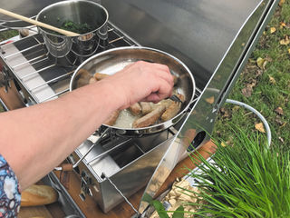 The Dutch Outdoor Camp Stove can be used in a matter of seconds, transforming from a portable case into a 20 inch 2-burner camp stove with integrated wind screens. It comes with adjustable feet to level the stove and has a quick coupling to attach a 1,5m stainless steel braided gas hose with regulator to your LPG cylinder. ​Before you order you can choose between a gas connection on the left or right side of the stove.
